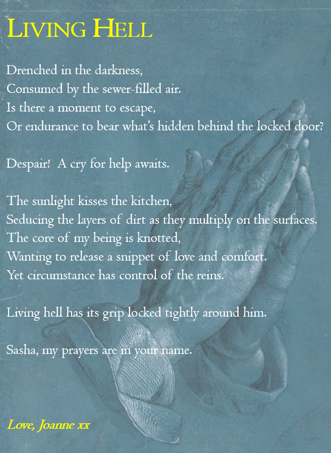 Joanne is sharing poems/reflections as we journey through our weeks and months, moments where she is taken by a person, a situation, a feeling. Here’s the first – Living Hell