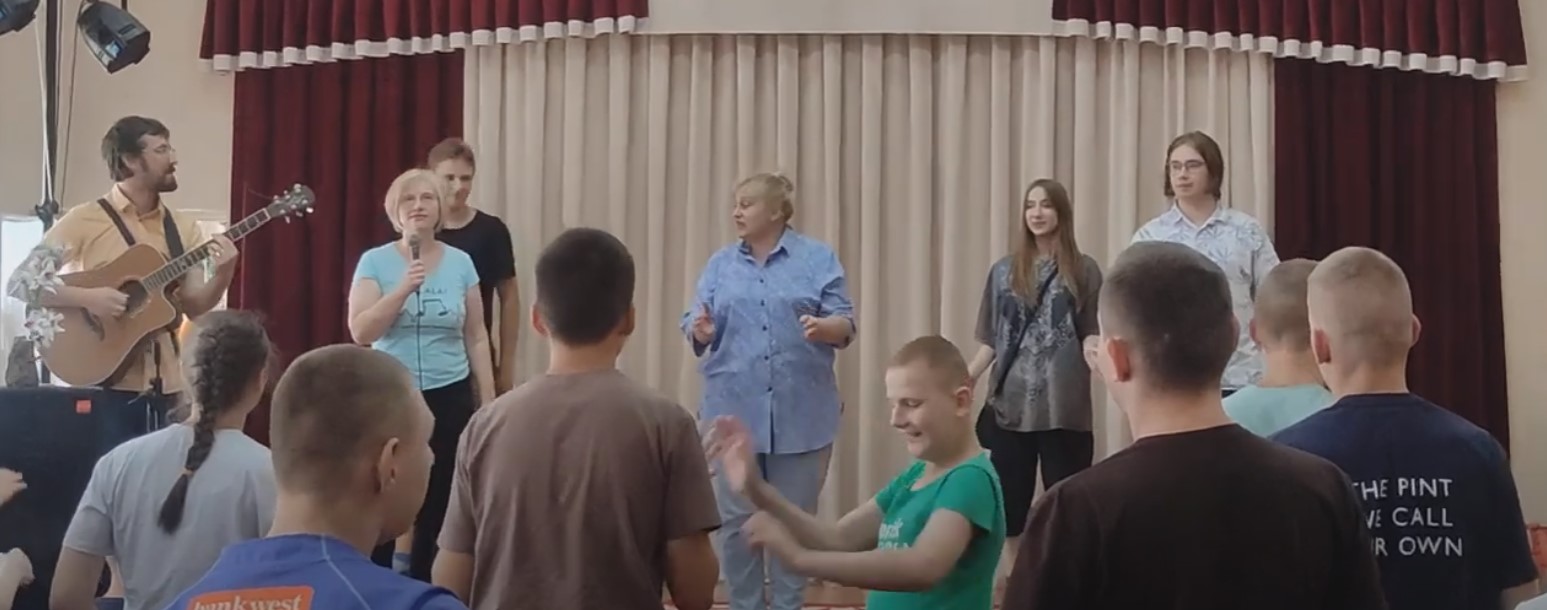 For the entire week, we are awaiting the arrival of Layla and her crew. No other context, simply “Layla would like to meet you”. It’s planned for Saturday the 19th, but this won’t work as there is a street party in Gorodishche on that day (woo-hoo another party that we’re invited to). Later than expected, Irina arrives at the kitchen and says we are to go to the theatre (there is an actual – velvet chairs and all – theatre on site). I get there, to see a group of about 11 people that are organising things with the kids. One of them (he subsequently became Michael) has a guitar and . . . he speaks English. He explains that they are a Baptist Group from Minsk that regularly visit Gorodishche. I’m brought to all the rooms where the kids are engaged in dancing, singing, painting cookies, painting hats, and colouring. Each group is led by 1 or 2 of the Baptist team. At the end of all the individual groups, it all comes together as a show (singing and dancing) and show-and-tell (all the artists) in the theatre. Everyone is having a ball.