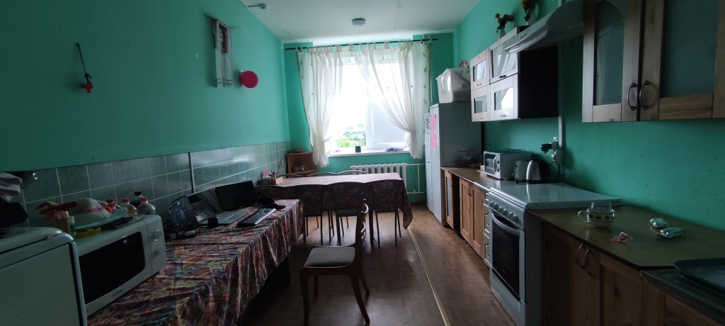 Kirill seems contented, I’m loathed to say happy. He shares a room with another young man from Gorodishche (Yura – not the driver one!). They have nice living quarters with two beds, a computer desk (that’s important for Kirill), a fridge, a table, and a TV. They share a toilet and separate shower room with the guys who live in the adjacent room. The community (over 300 people here too) spans across buildings (large and small) and has exceptionally well-maintained grounds. When we arrive, we are checked in (we’re on the list so all is good to go) and allowed to move about freely in the house and gardens – not something that we were expecting.