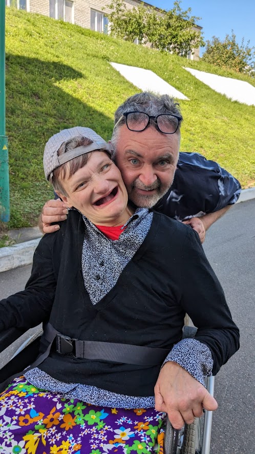 His parents are alive (although they seldom visit him) but Kirill chooses to call me “Dad”. We formed a bond on my first visit when he shone out of the crowd of shining people in the group that includes Tanya (more on her later). He’s handsome and very bright. His challenge, legs and arms that are useless to him (although he does show some amazing skill with his twisted hands when asked to enter a phone number into an old Nokia when we meet him in Damachava).