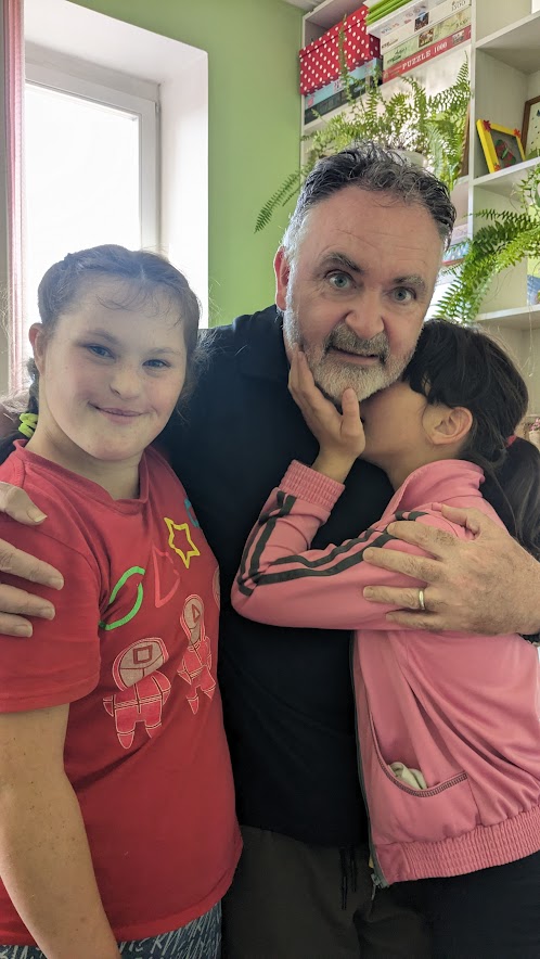 Our first visit, when we were unaware of the afternoon sleep, found us with just three of the girls and the teacher. We went to the classroom and played and coloured (you must remember that I am quite an artist) with the girls. Ira (she’s non-verbal and deaf) takes a shine to my beard; she enjoys pulling at it and pinching my nose. In certain circles, this might be quite unacceptable behaviour, but I am able to encourage her to not be so rough (I understand that this is a sensory stimulant for her). She’s so adorable (and before you ask Ruth Byrne – no I did not fall in love with a young lady in Cherven, nothing to see here). On a later visit, Joanne notes that Ira seems to have accumulated three rings as gifts when others have just one – I wonder how that might have happened!