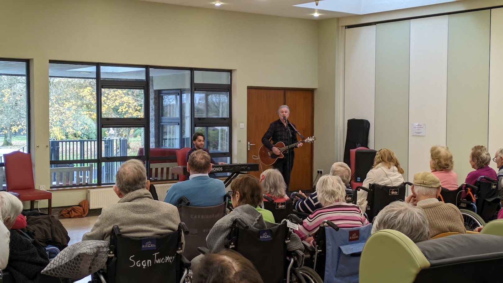 There was quite some time between Project 1 (Belarus) and Project 2 (Cyprus), time to find another “job”. For the weeks between the projects, we spent afternoons in Carrigoran House (a residential home for seniors) close to our home here in Shannon. We were working with the events team, plenty of craic with bingo, singing, sitting and chatting, hand massage, and general merriment. As we’ve experienced previously, music is such a powerful way of communicating – often with people who have little or no language. We have had to learn so many new (or should I say old) songs to keep the residents singing along in Carrigoran, especially at the “pub” on a Friday afternoon. We had to take a back seat when the superstars arrived to entertain!